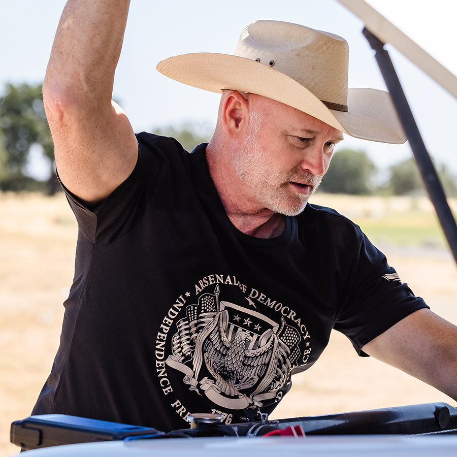 Born from the spirit of America’s founding and forged in the grit of service, Arsenal of Democracy is more than apparel—it’s a stand for freedom, faith, and the American fight for liberty. As a Disabled Veteran–Owned brand, every shirt we make is a battle flag you can wear, a reminder that America’s strength lives in her people.