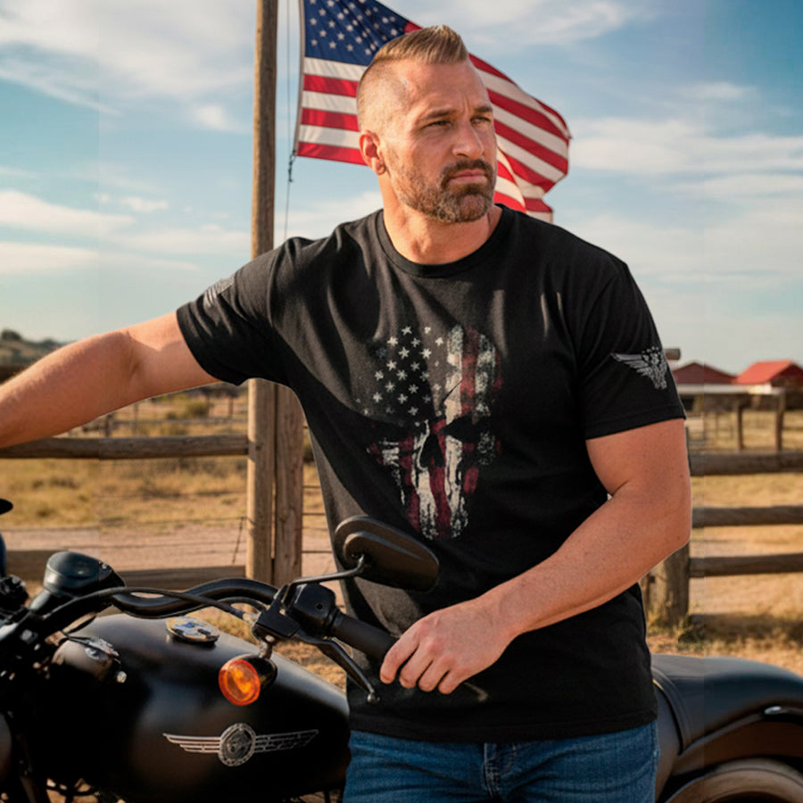 From the Revolutionary War to today, Americans have always risen to the challenge when freedom is threatened. This shirt celebrates that indomitable spirit—the refusal to quit, surrender, or back down no matter the odds. It's for warriors, veterans, and patriots who carry that same fighting spirit in their hearts.