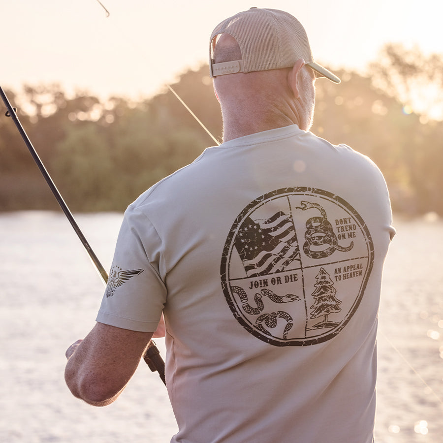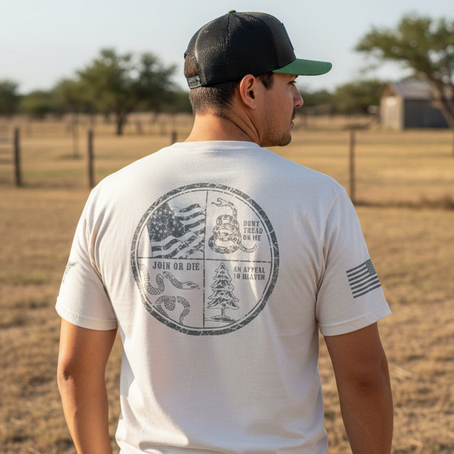 From the Gadsden Flag's "Don't Tread on Me" to the Betsy Ross flag's 13 stars, these revolutionary banners represented the birth of a nation. This shirt honors the flags that flew when America declared its independence and fought for freedom against the world's greatest empire.