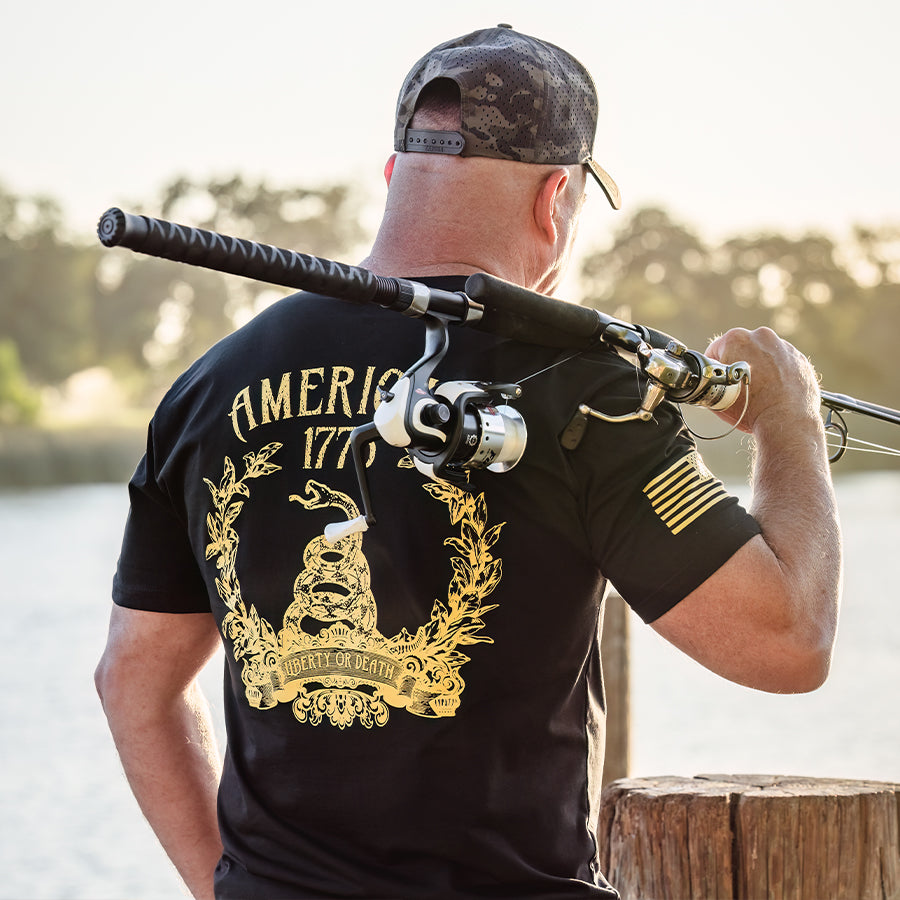 These aren't just words from a history book. They're a battle cry that echoes through every generation of Americans who refuse to live on their knees. This shirt honors those who understand that freedom is worth fighting—and dying—for.