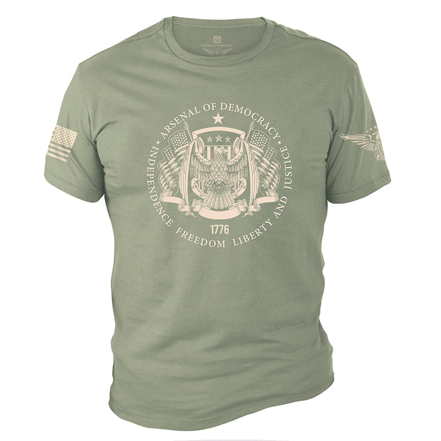 These aren't just words—they're the foundation of everything that makes this nation exceptional. Independence from tyranny. Freedom to pursue your dreams. Liberty to live without oppression. Justice for all under the law. This shirt celebrates the core principles that built America and keep it strong.